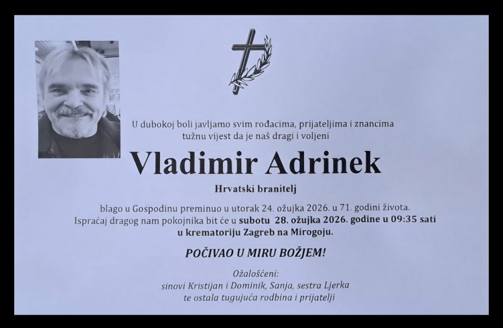 Nastavite čitati OBAVIJEST O SMRTI VLADIMIR ADRINEK – ČARLI.