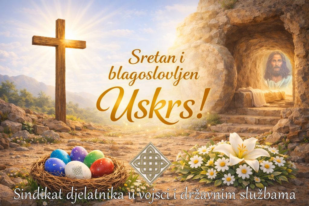Svim članicama i članovima Sindikata djelatnika u vojsci i državnim službama, povodom najvećeg kršćanskog blagdana upućujemo najiskrenije čestitke vama i vašim obiteljima, sa željom da ga provedete u zdravlju, radosti i miru. Sretan i blagoslovljen Uskrs!